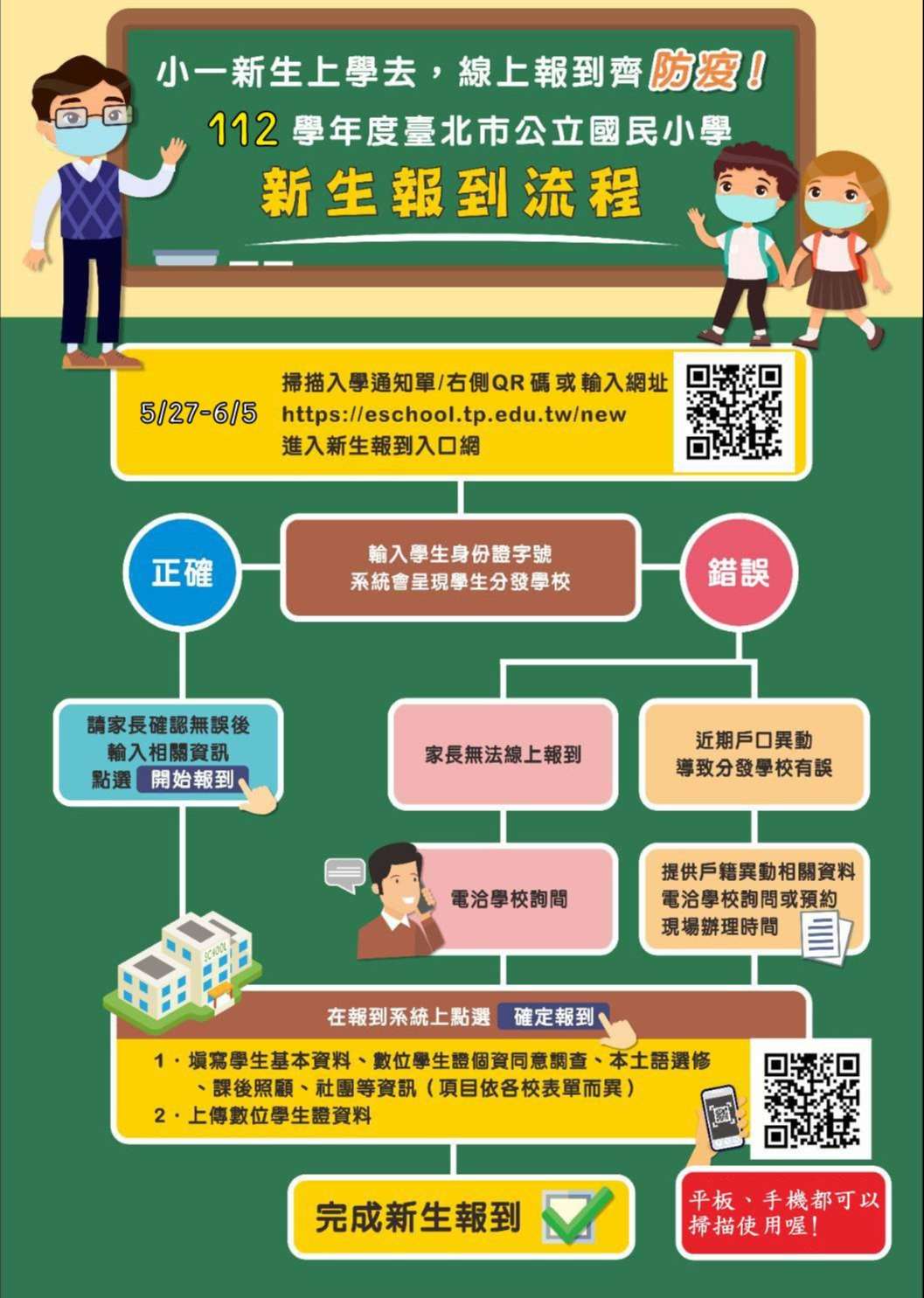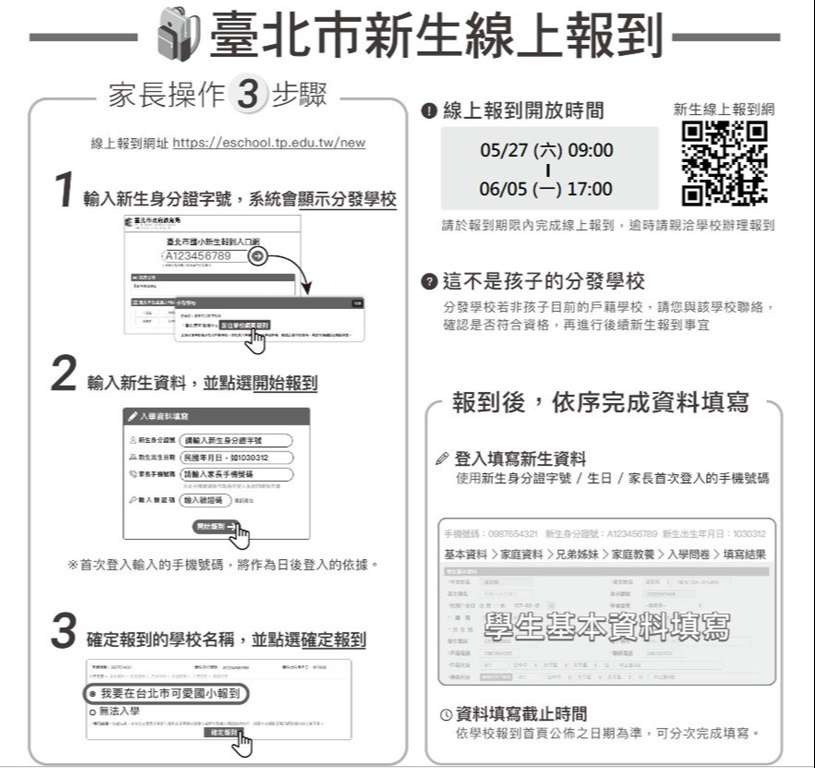 *教育局將於5/12寄發入學通知單,請留意您家的信箱!