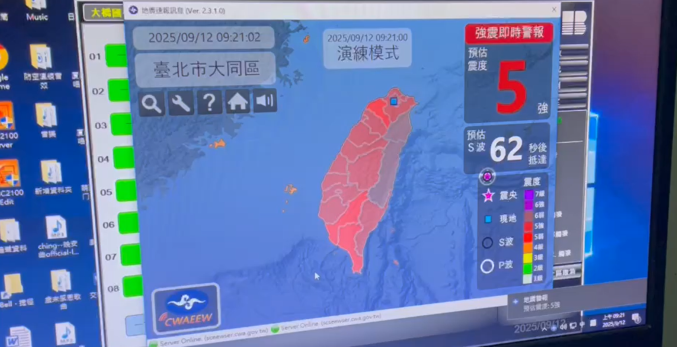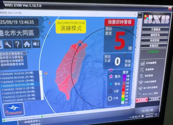 1140919當天因演練當下未錄到發布的螢幕,但因系統確實界接,並用於當天國家防災日演練,故補拍界接成功畫面,聲音可從當天演練影片的警報聲聽出。